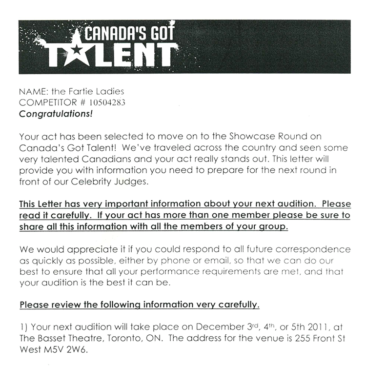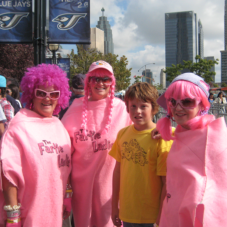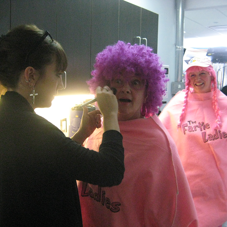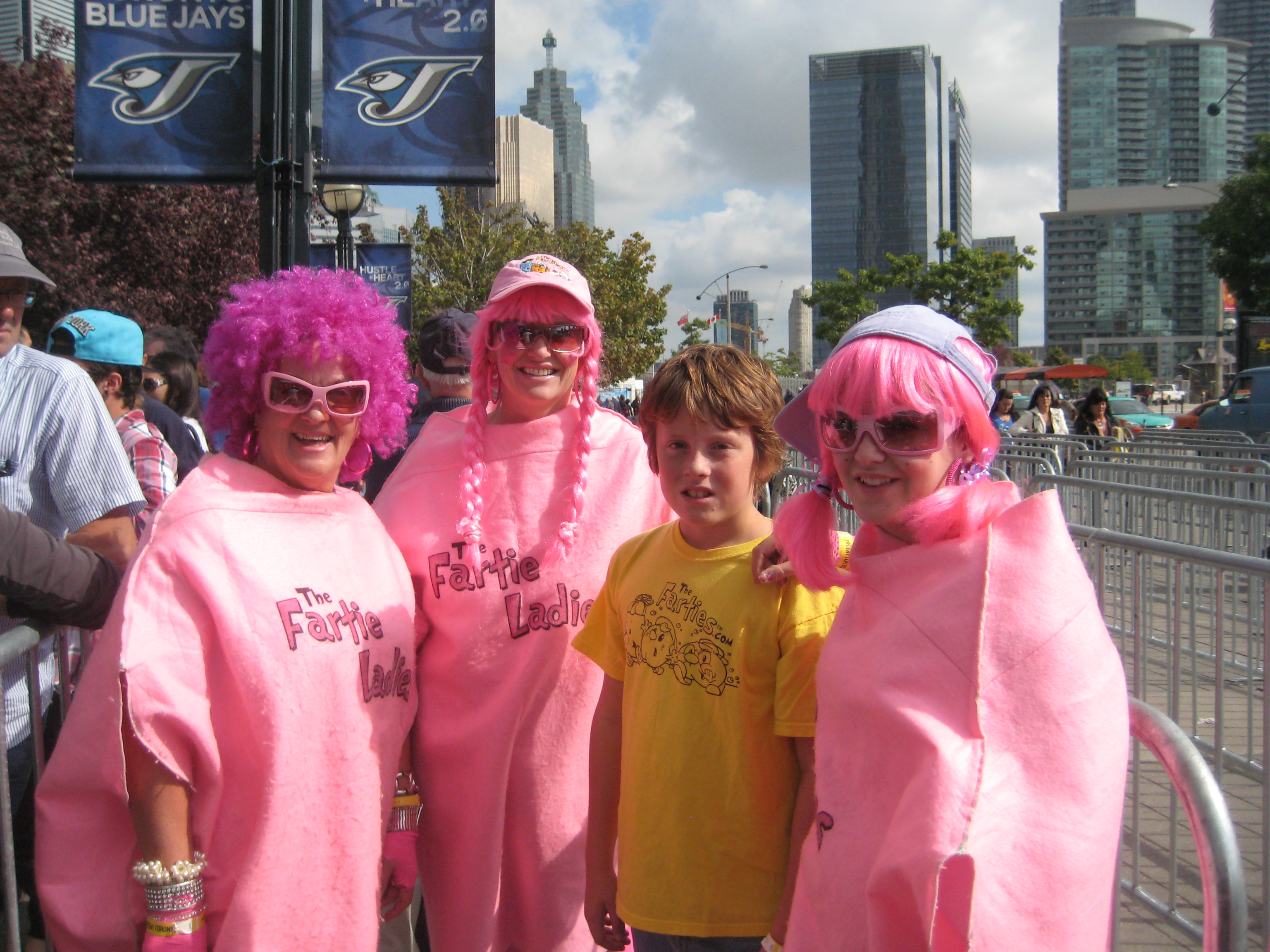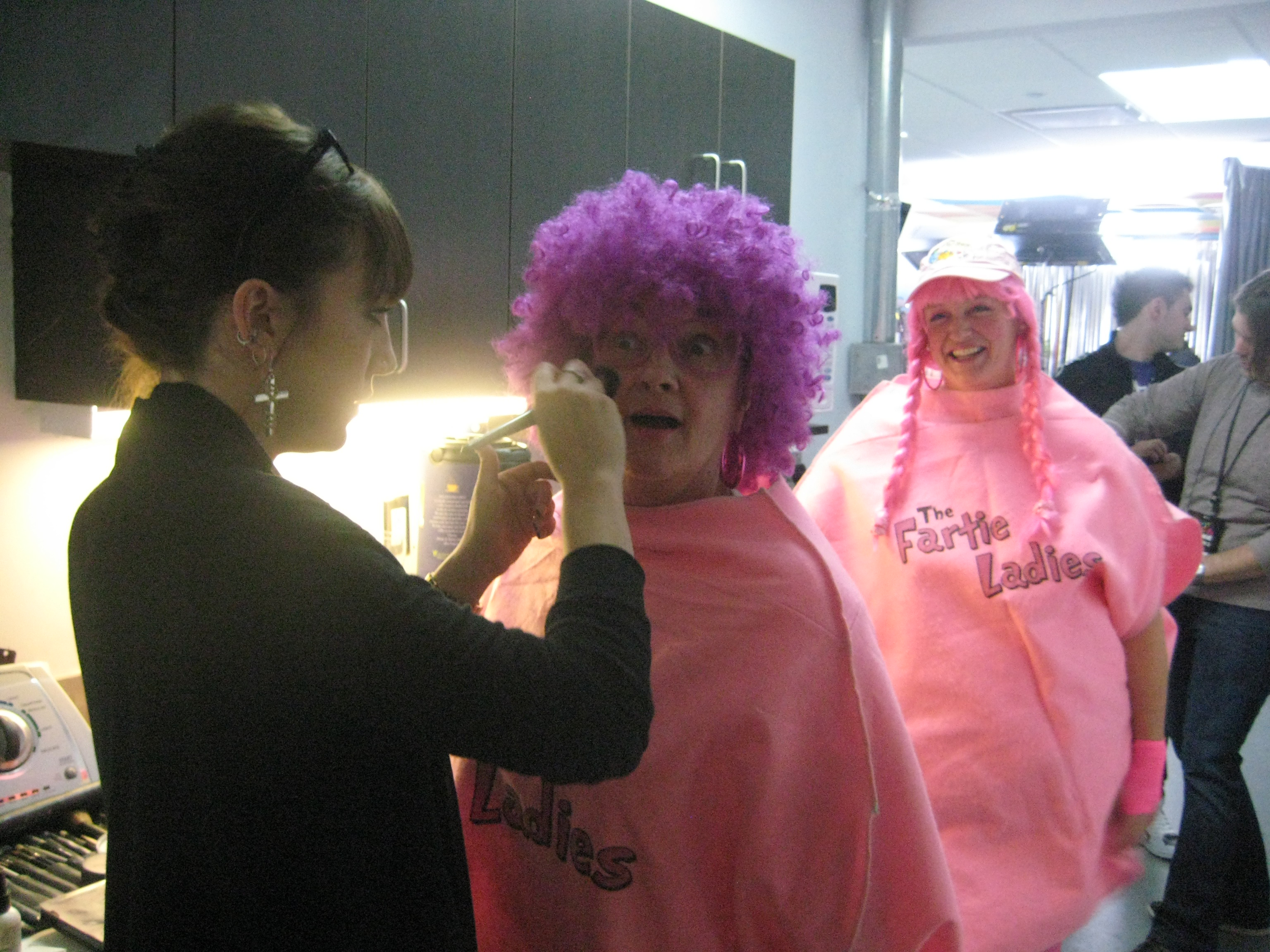 The Fartie Ladies arrives in Toronto to perform on Canada Got Talent...all dressed in our signature outfits.. Big Pink whoopee costumes with Colouful Socks, Big Pink and Purple Hair and even bigger personality.. We are ready to let it rip with their signature song "The Fartie Ladies"... What a HOO..TIN good Time. WOW!!!! Gas was flying that day. So much FUN standing in line chatting with everyone...So many people wanted their pictures taken with us... We never went on with intending to win. We went go to promote the humor of life that when things get to you.. the FARTIE LADIES are here to "Entertain" and help you take a load off...
