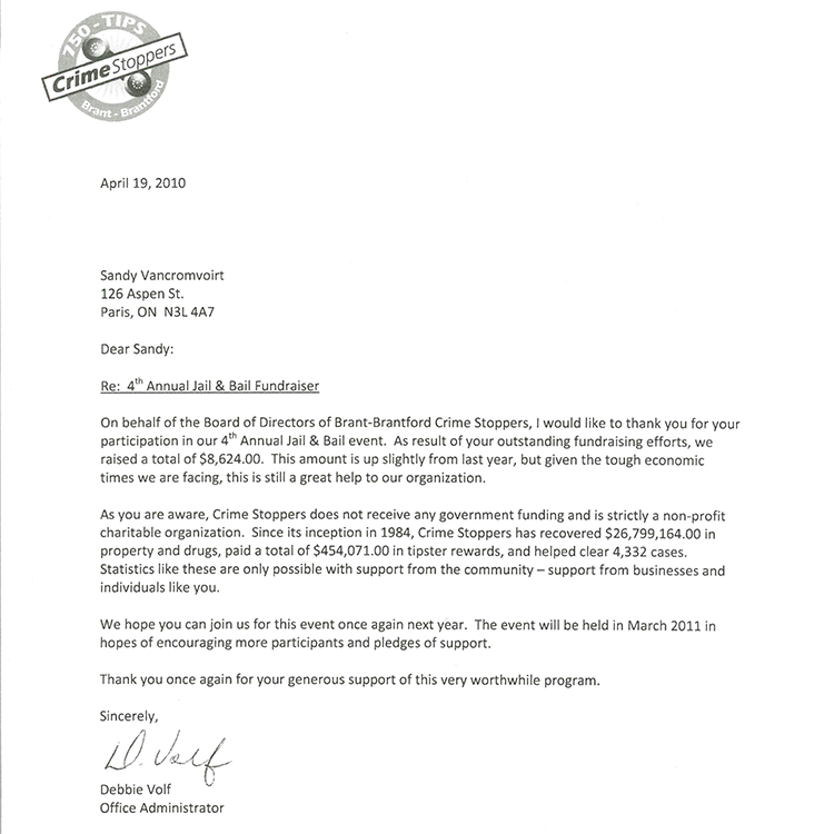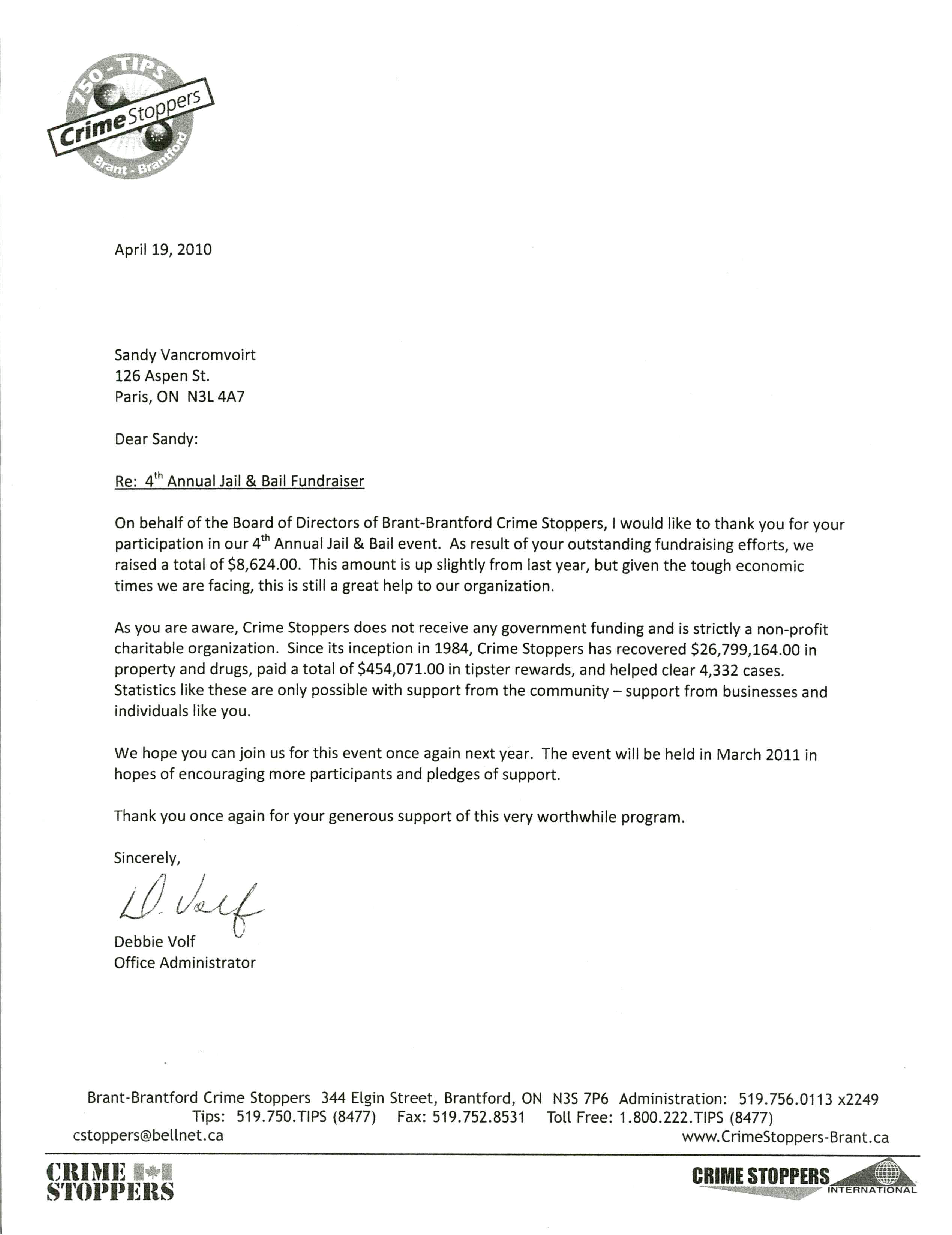 We helped raise over $8500 in the 2010 Jail & Bail!