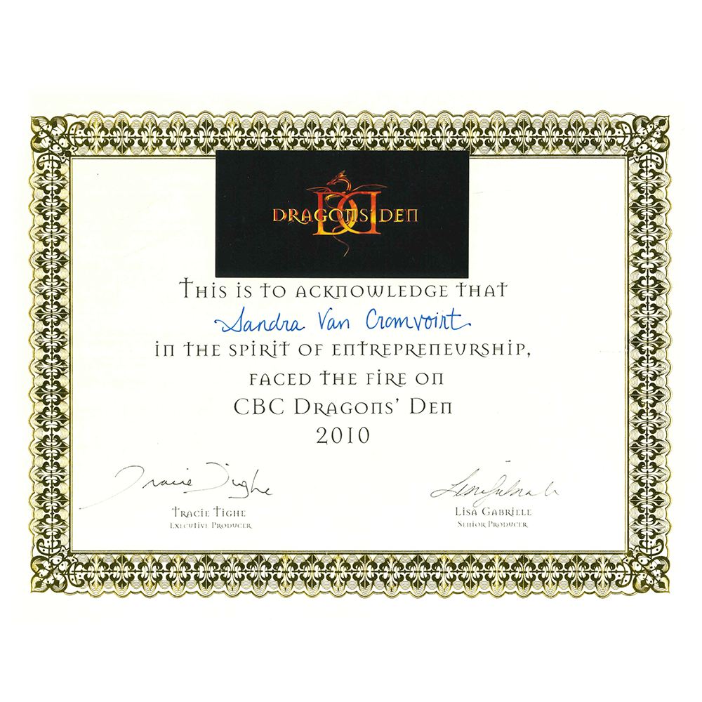We were so excited to be given an opportunity to audition for Dragons Den. We were working with a young woman, one of the producers from Dragons Den and she just loved our first showing. We were patiently waiting to hear from her and then we received an email saying we could expect a message from the Dragons very soon. We thought we couldn’t get any busier, but they called and we had 3 weeks to get ready!